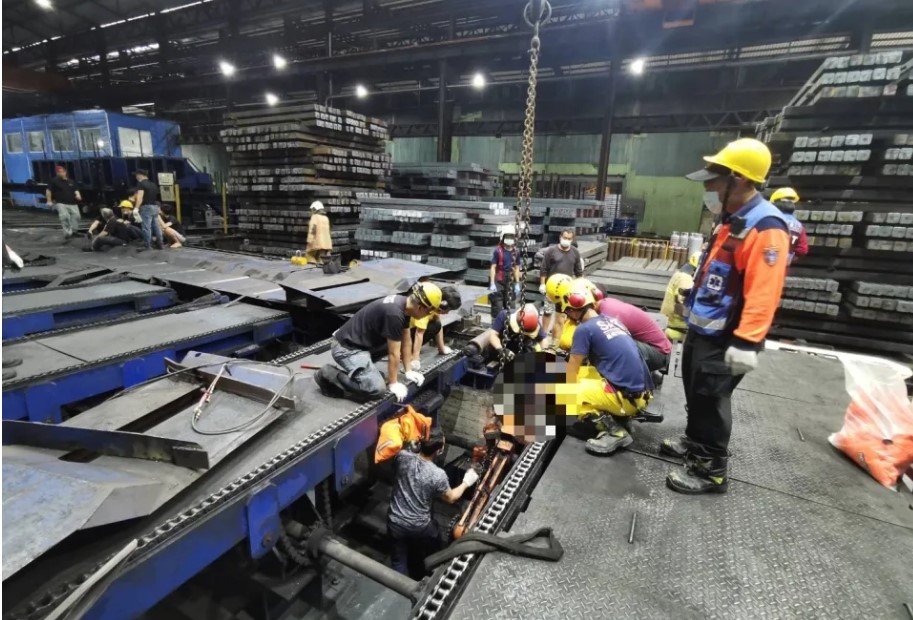 Saat petugas datang ke lokasi, korban diketahui tak bernyawa dan petugas berusaha mengeluarkannya dari lilitan mesin, separu tubuhnya bagian bawah termakan mesin besar itu.
